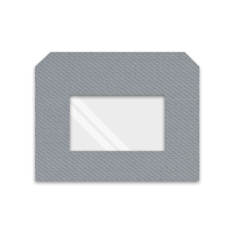 Doorlopende zichtvenster met stroken doek boven- en onderaan.